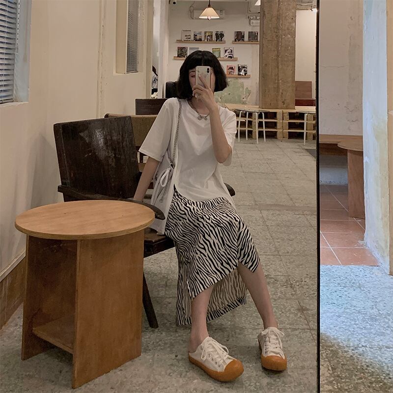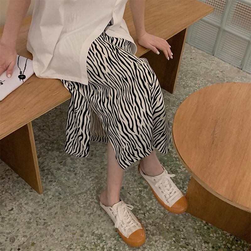 【韓国通販 dgo】high-waist zebra pattern split skirt(B0622)