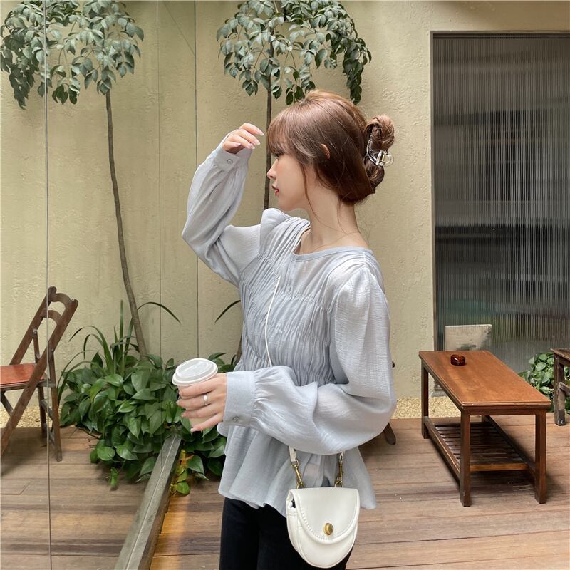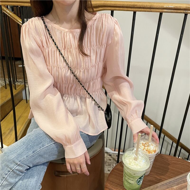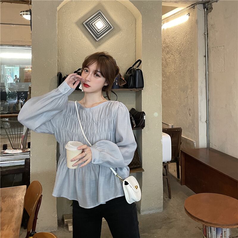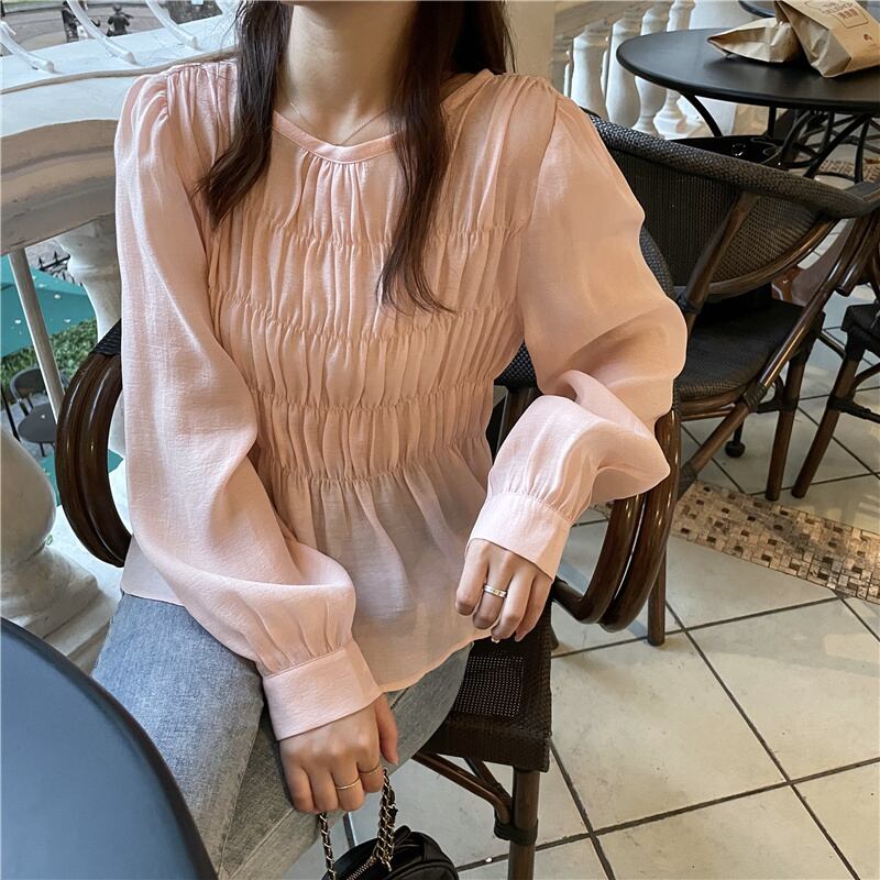 【韓国通販 dgo】round neck long sleeve chiffon blouse 2colors(B0634)