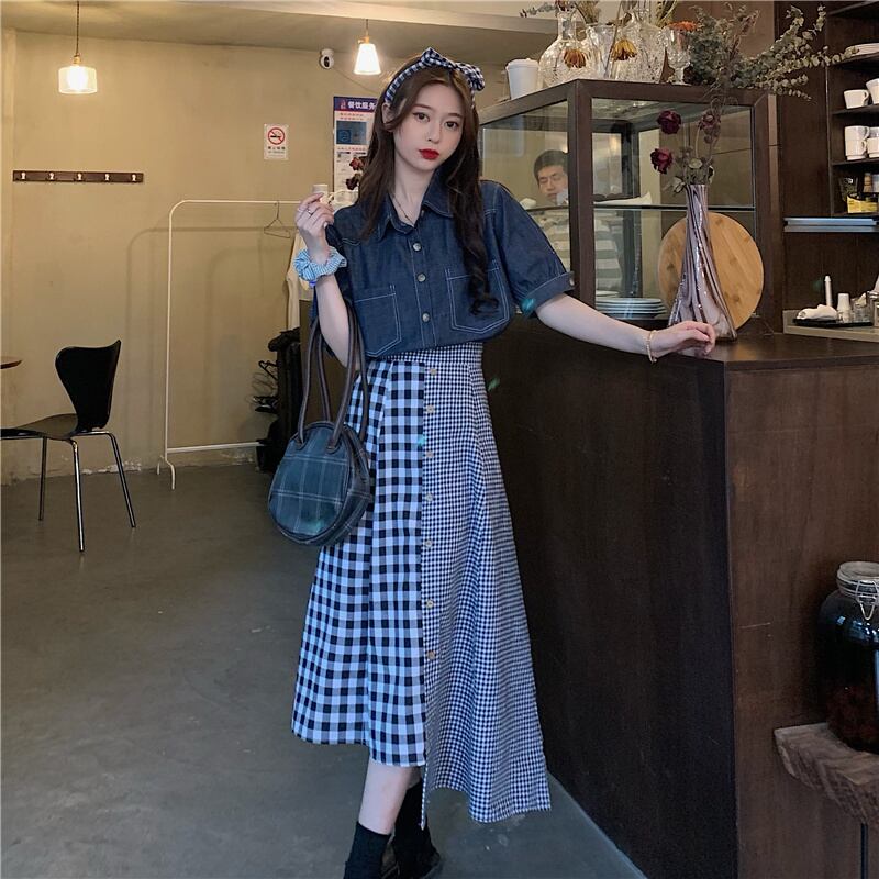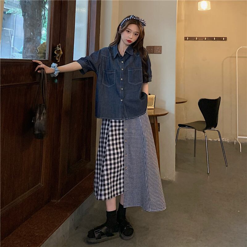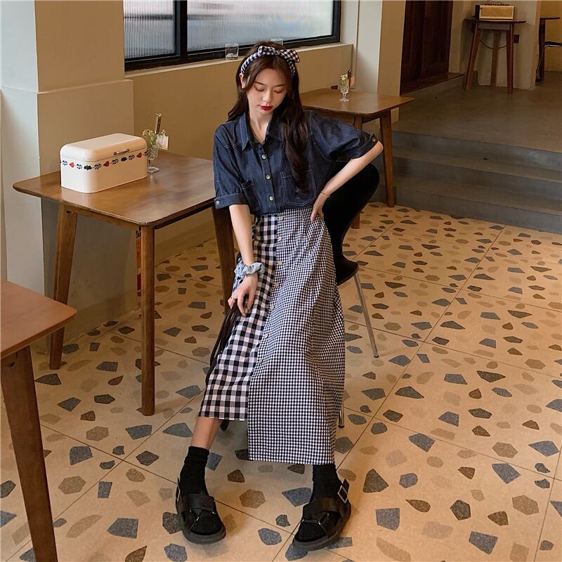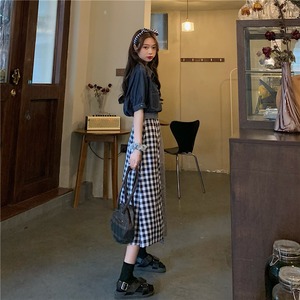 【韓国通販 dgo】middle-length checked irregular skirt(B0644)