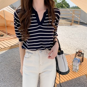 【韓国通販 dgo】stripe short sleeve knit tops 2colors(B0656)春が楽しくなるトップス