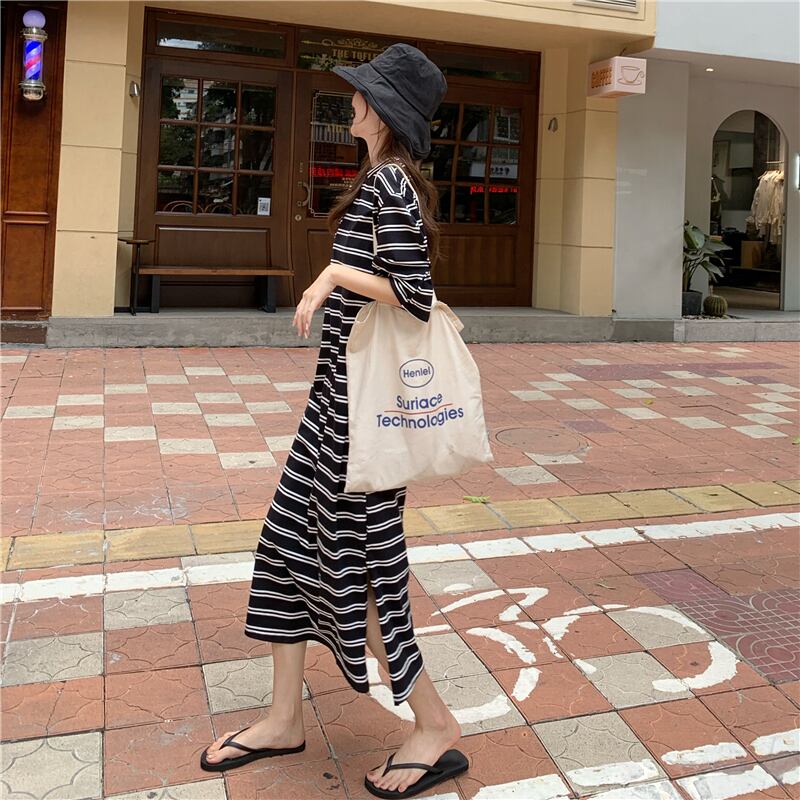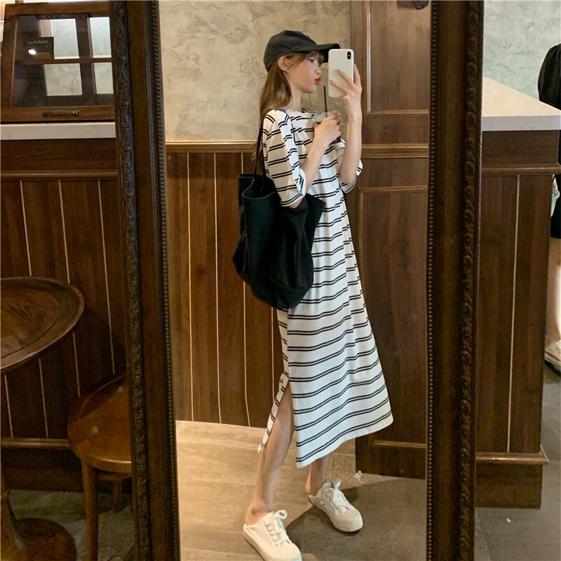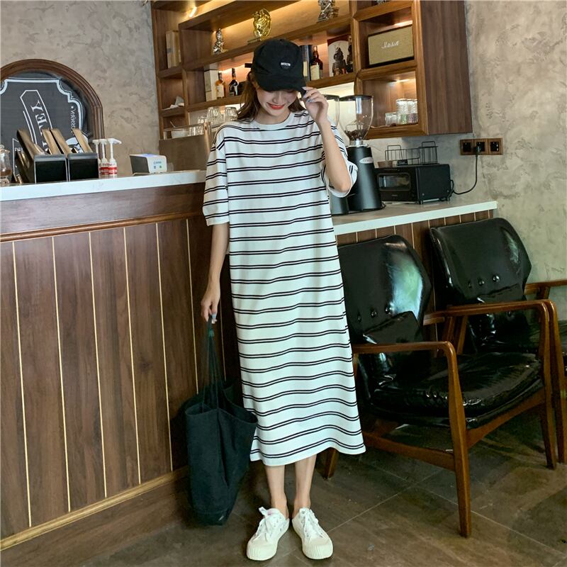 【韓国通販 dgo】middle-length stripe dress 2colors(B0657)