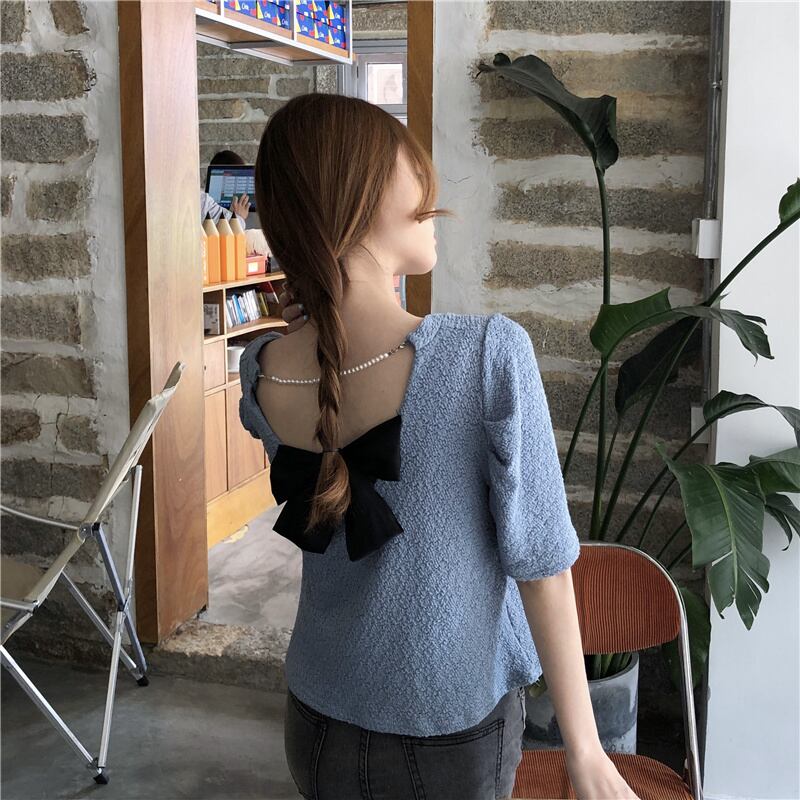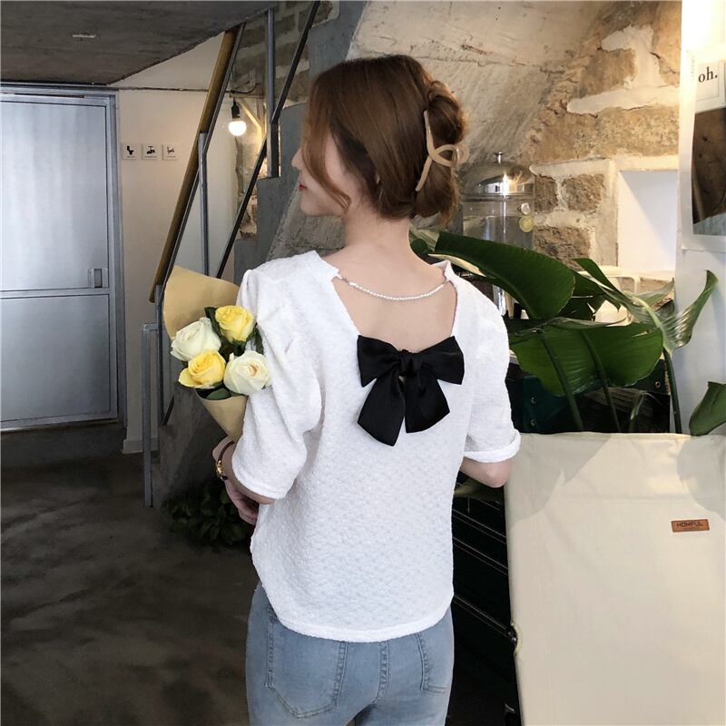 【韓国通販 dgo】puff sleeve bowknot blouse 2colors(B0671)