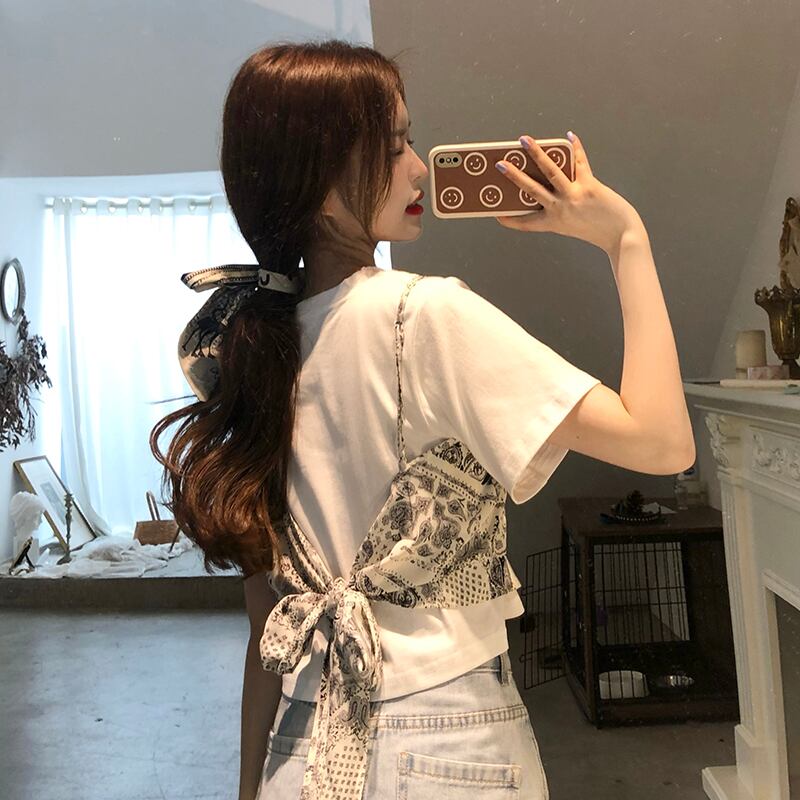 【韓国通販 dgo】white short tops + camisole vest two-piece(B0680)春が楽しくなるトップス