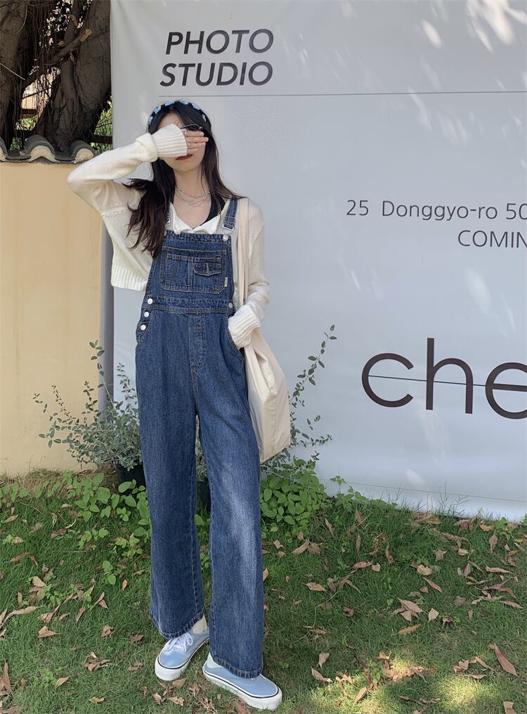 【韓国通販 dgo】high-waist denim darkblue overall (B0727)