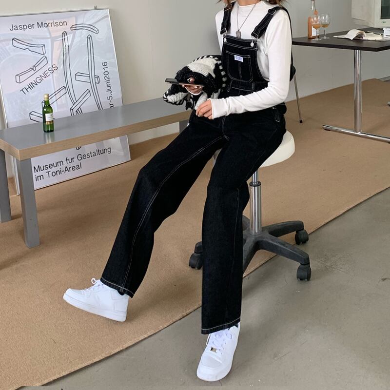 【韓国通販 dgo】high-waist wide-leg black overall(B0725)