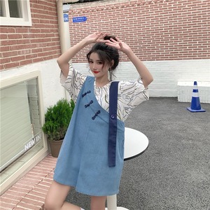 【韓国通販 dgo】wide-leg overall + round neck tops two-piece(B0724)