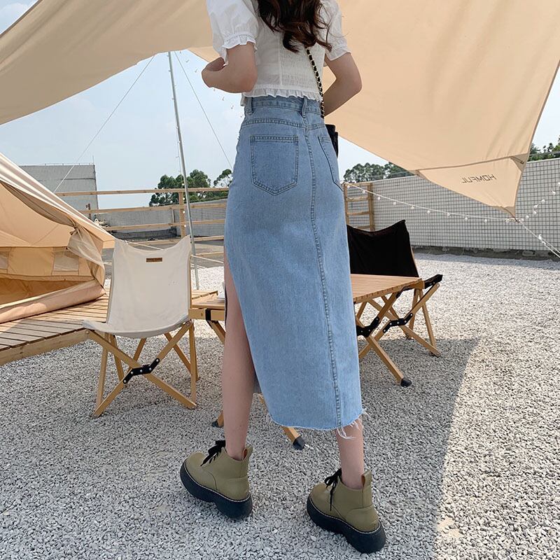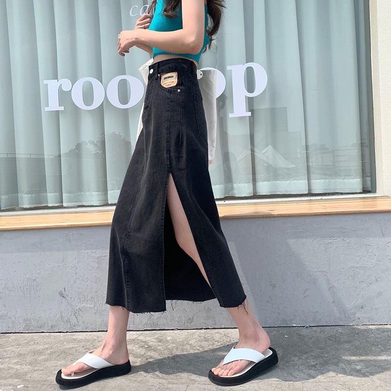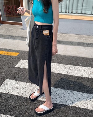 【韓国通販 dgo】side split denim skirt 2colors(B0717)