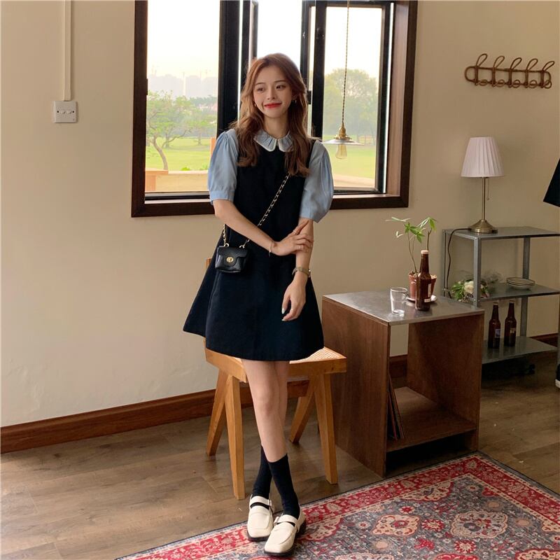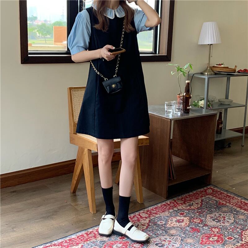 【韓国通販 dgo】retro little black dress + puff sleeve tops two-piece(B0714)私らしい、旬のワンピース