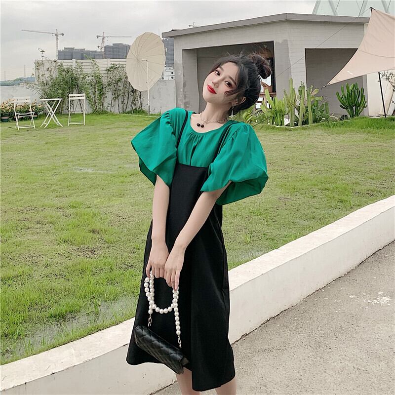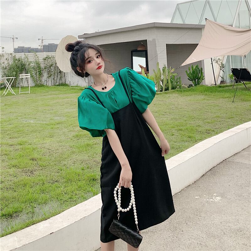 【韓国通販 dgo】black strap skirt + french retro tops 2colors(B0749)