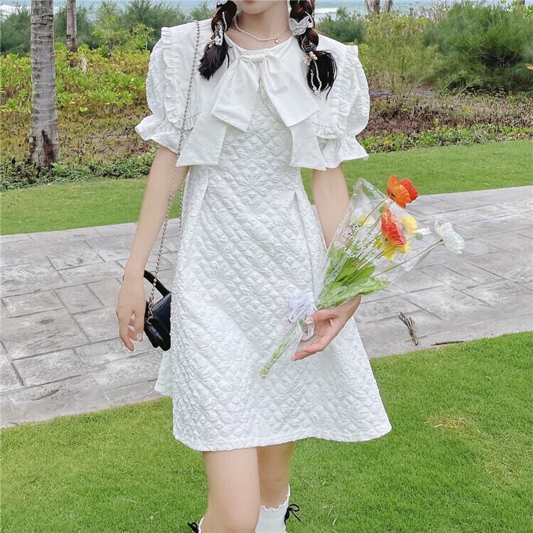 【韓国通販 dgo】high-waist puff sleeve elegant dress 2colors(B0736)