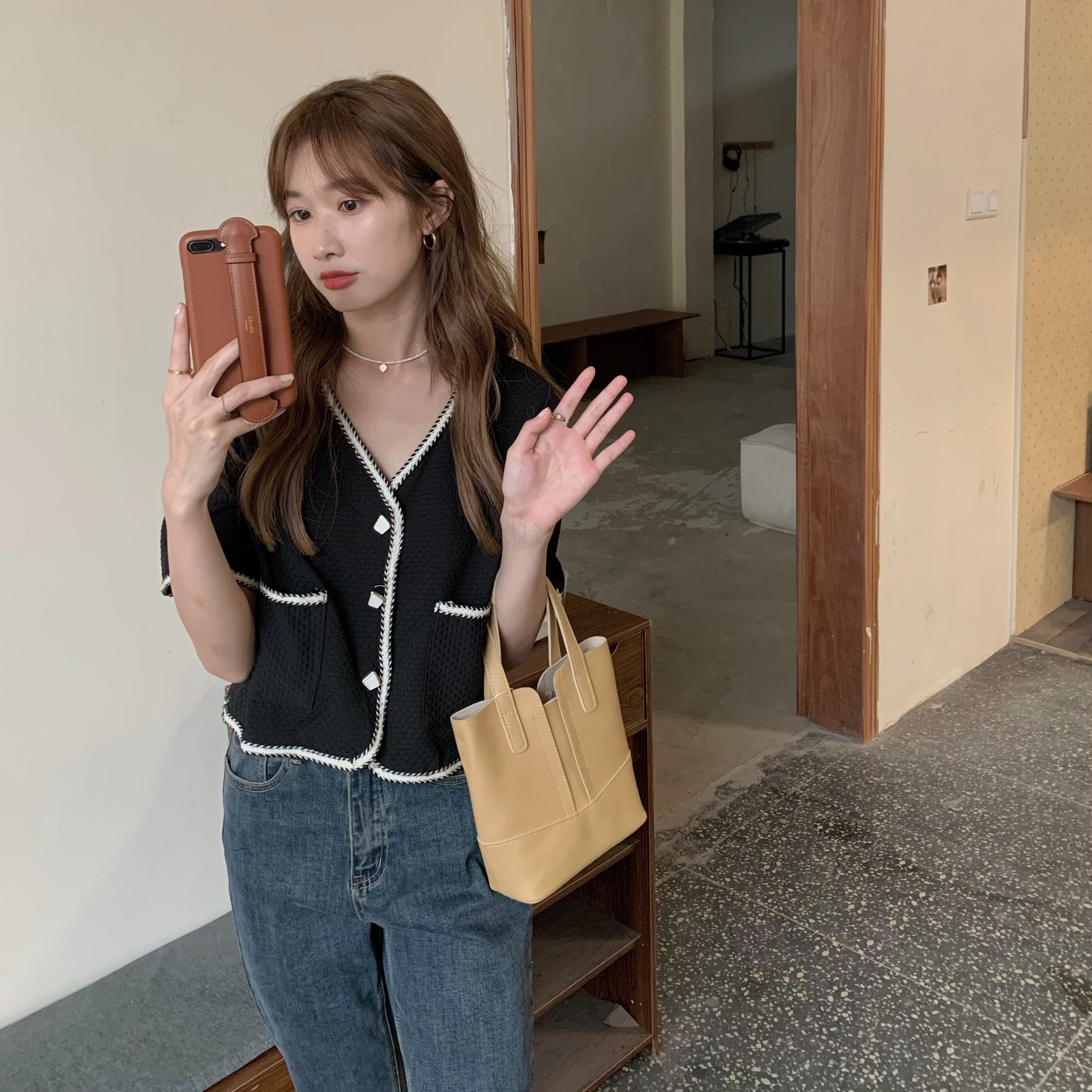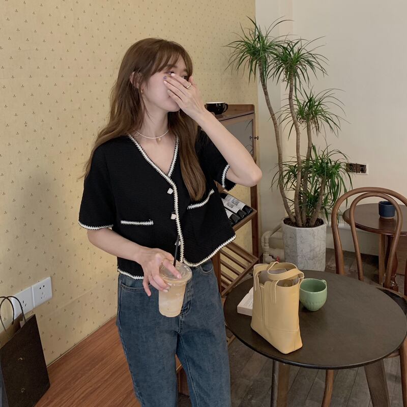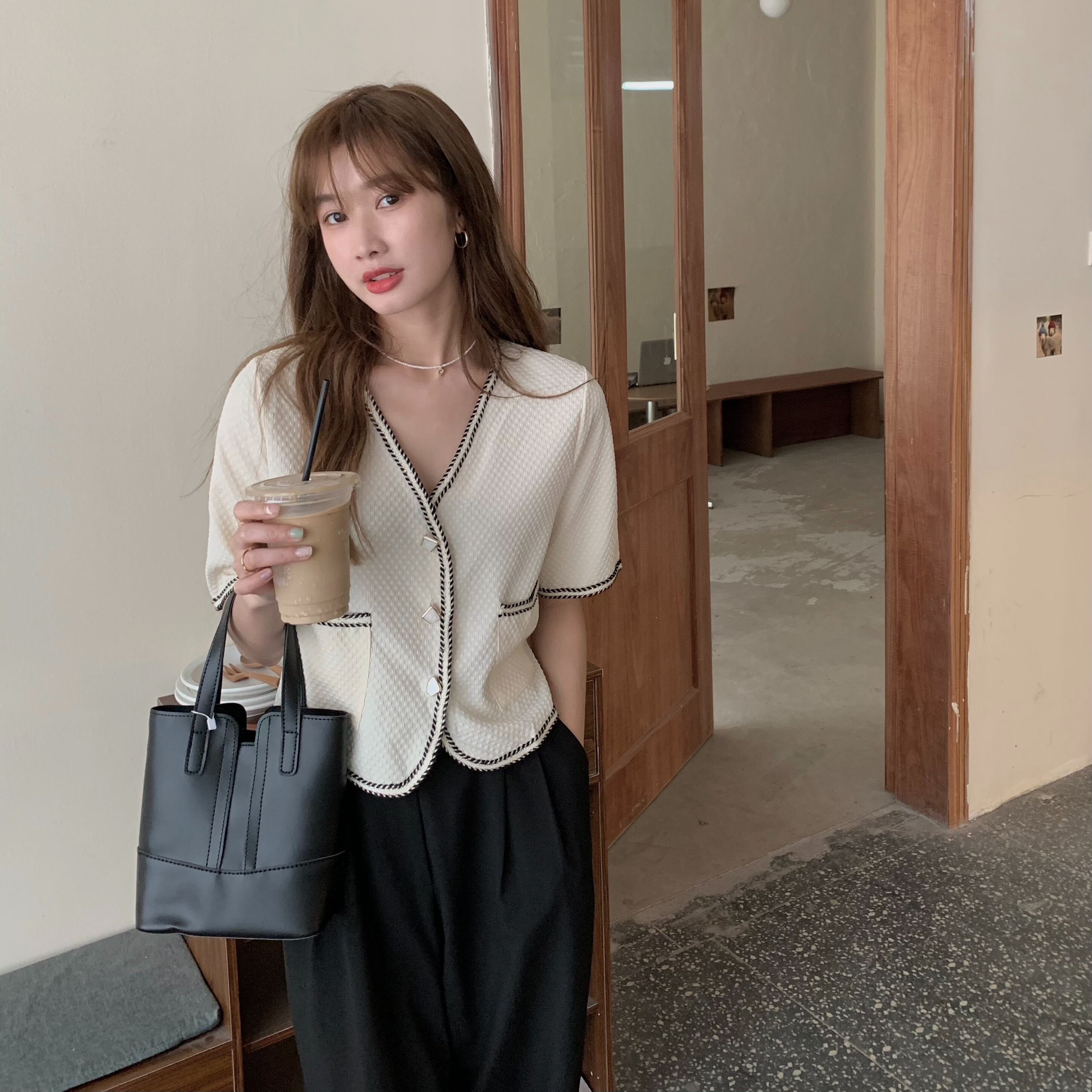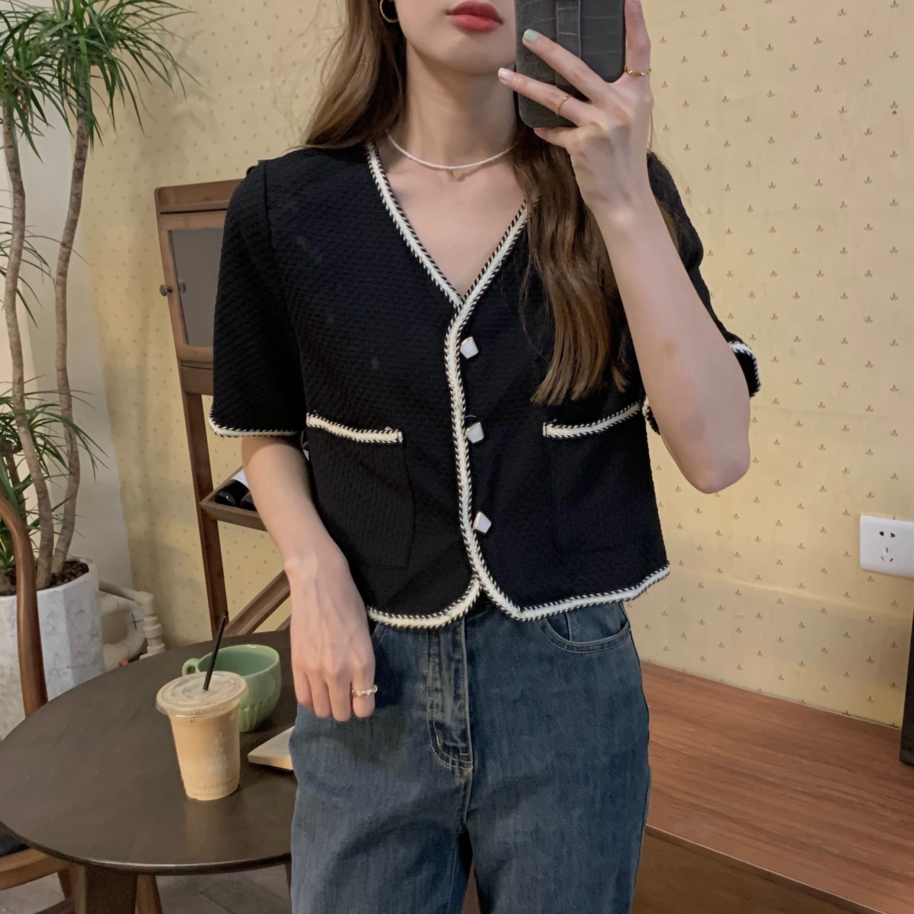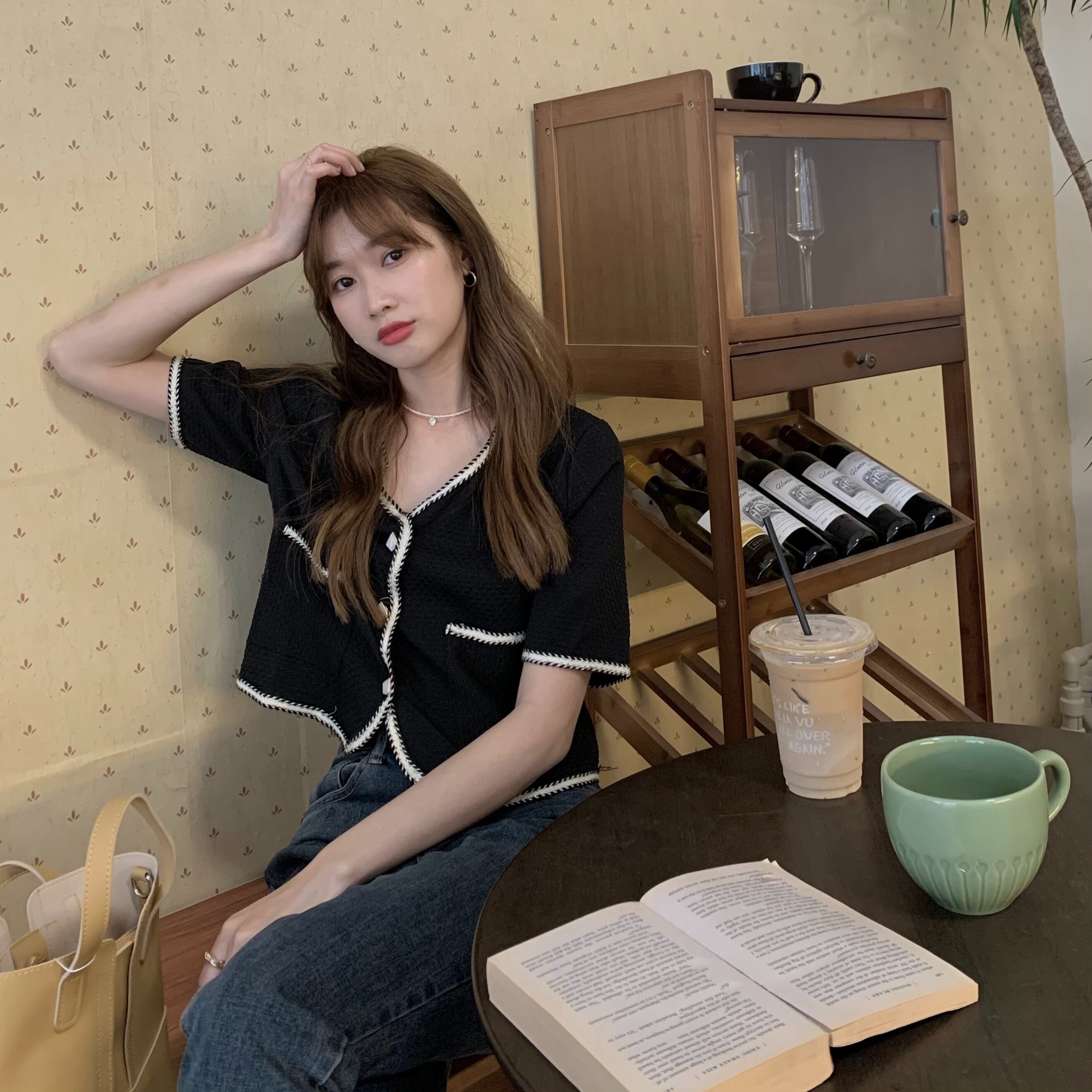 【韓国通販 dgo】retro v-neck short tops 2colors(B0735)