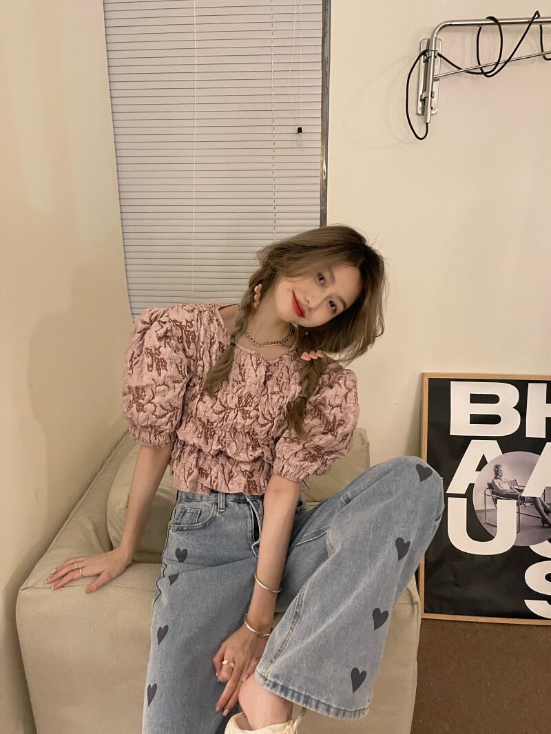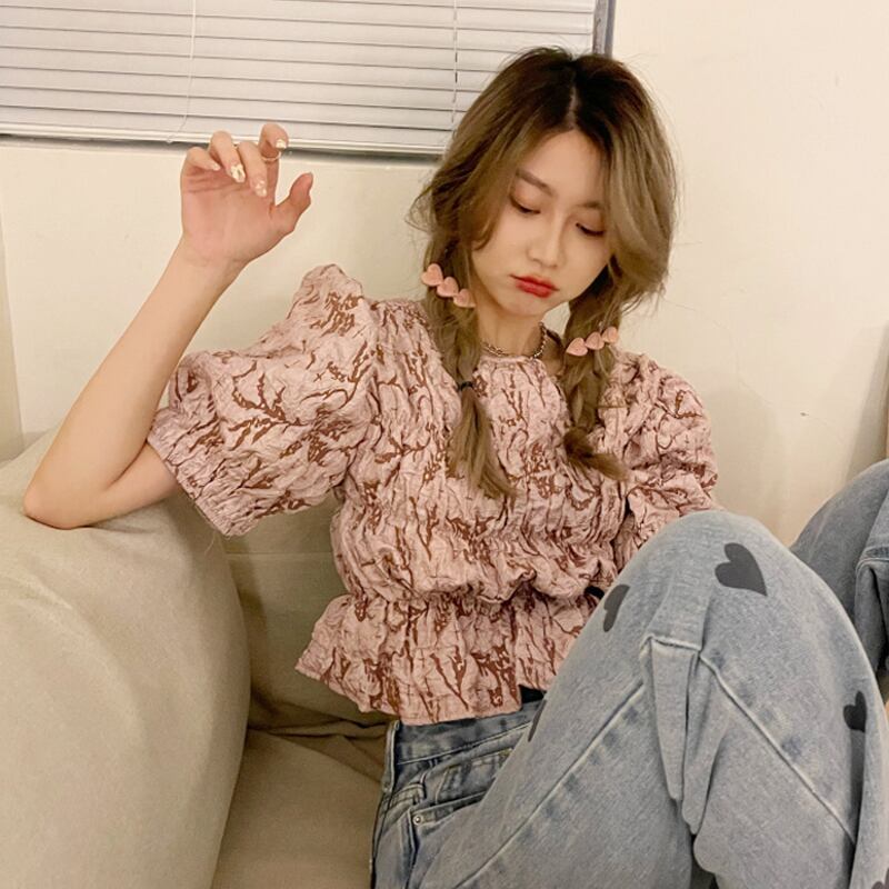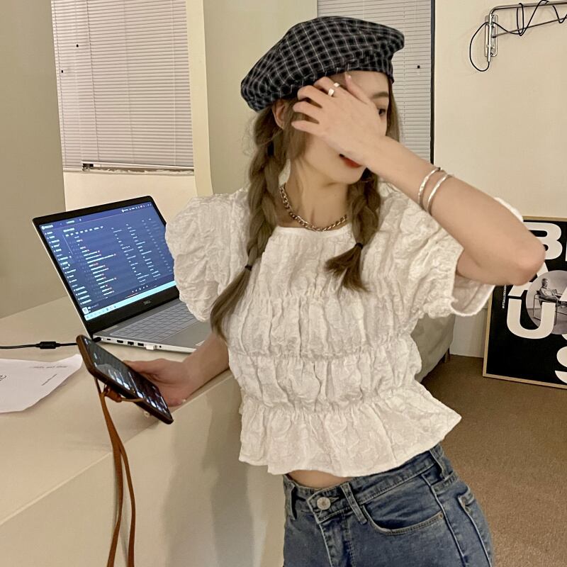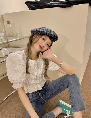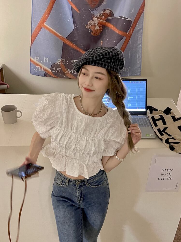 【韓国通販 dgo】french puff sleeve round neck tops 2colors(B0755)