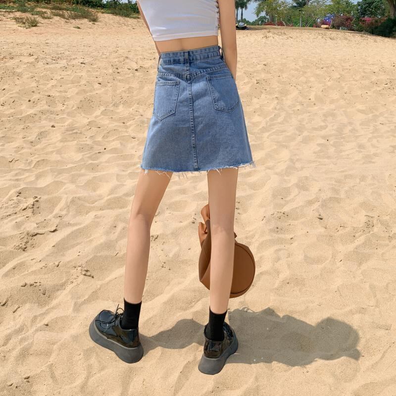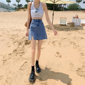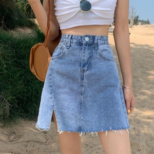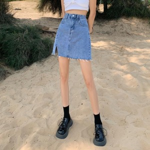【韓国通販 dgo】high-waist denim split short skirt(B0795)