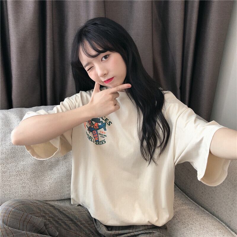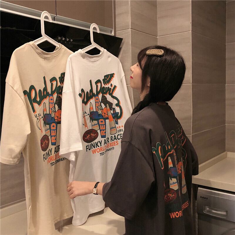 背面のレトロなデザインと大きめなシルエットが可愛いTシャツ。