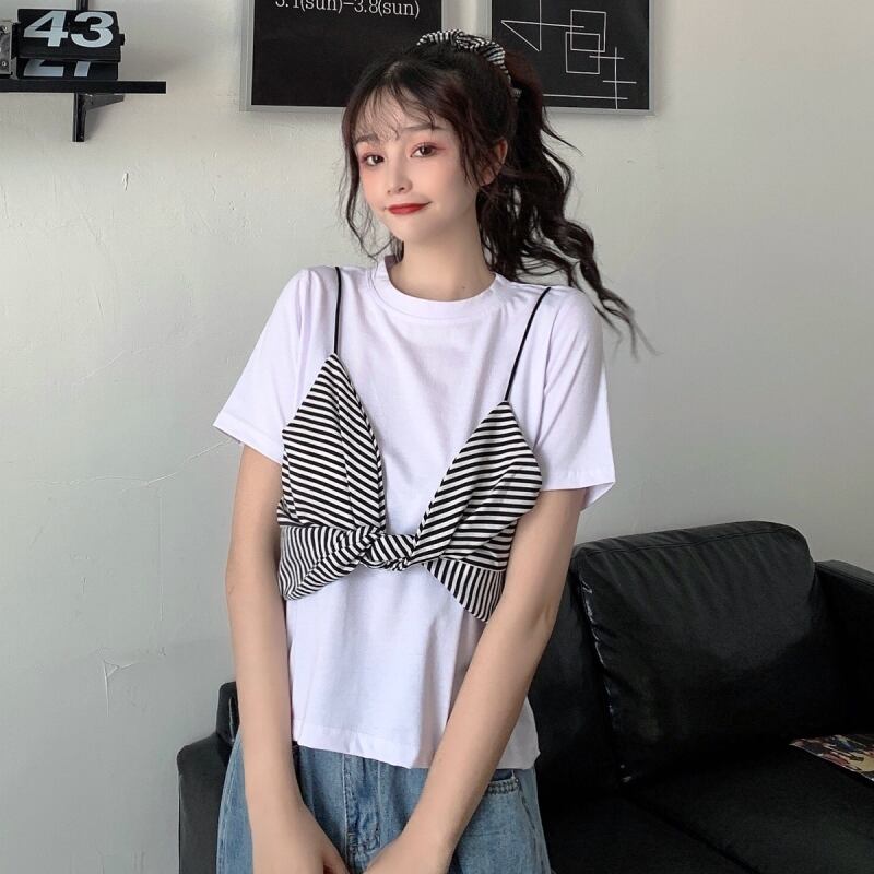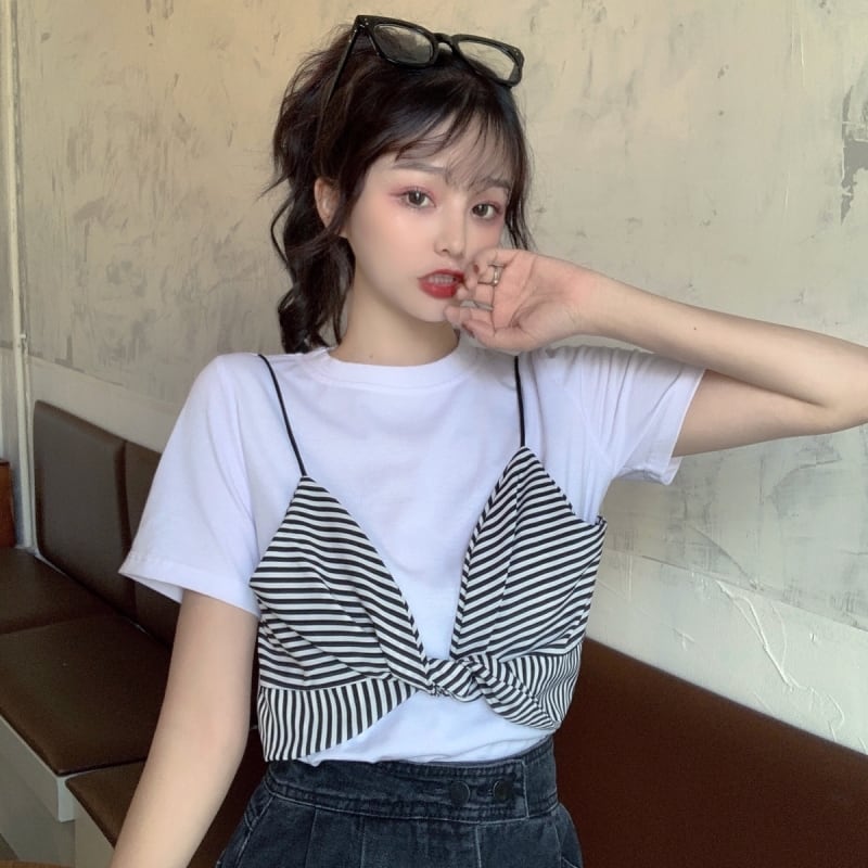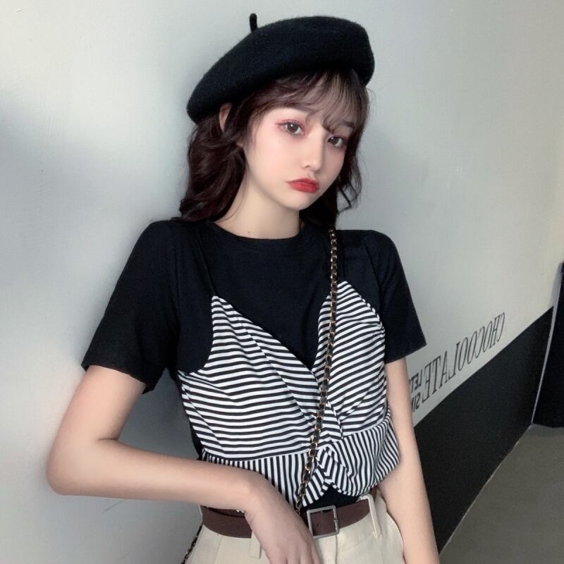 【韓国通販 dgo】round neck stripe stitch tops 2colors(B0811)