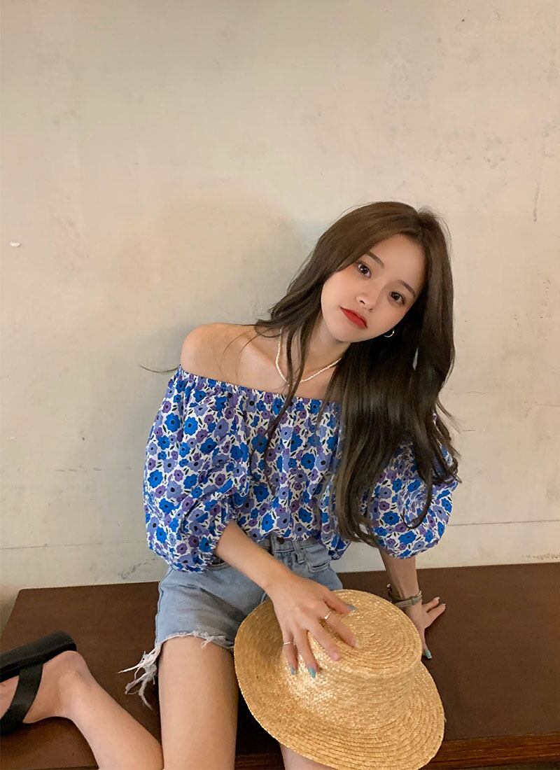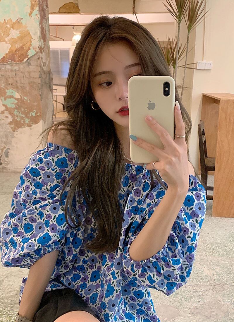 【韓国通販 dgo】retro off-shoulder puff sleeve tops 2colors(B0833)