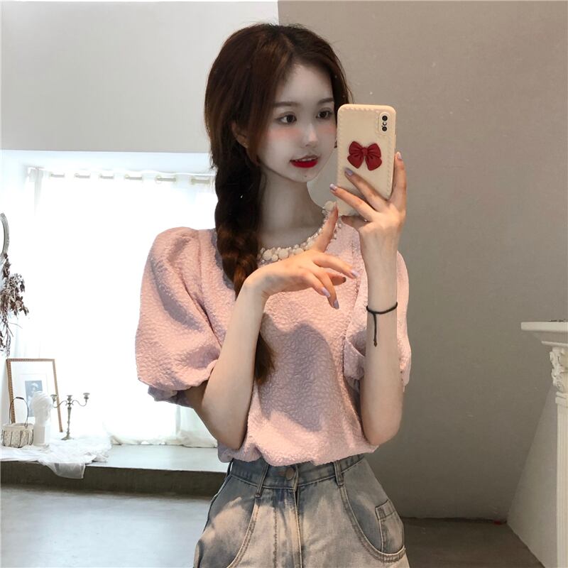 【韓国通販 dgo】puff sleeve round neck blouse(B0839)
