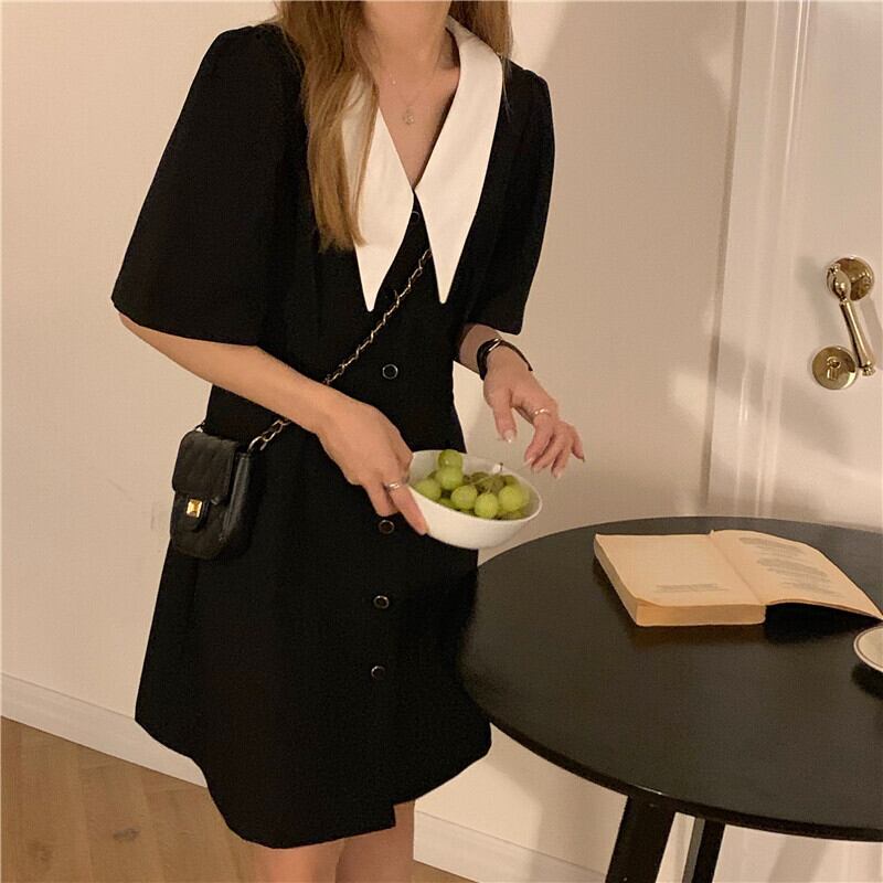 【韓国通販 dgo】high-waist big collar small black dress(B0849)