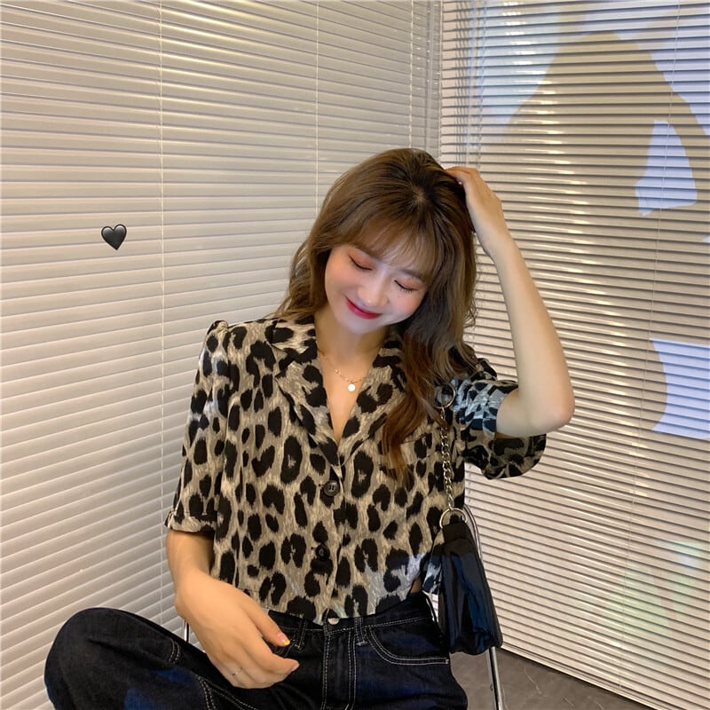 【韓国通販 dgo】leopard pattern high-waist short tops(B0851)