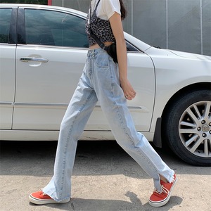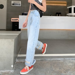 【韓国通販 dgo】high-waist wide-leg light blue jeans(B0855)
