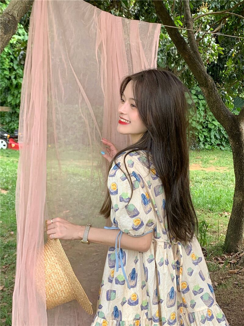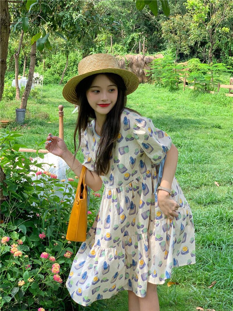 【韓国通販 dgo】round neck puff sleeve floral dress(B0863)