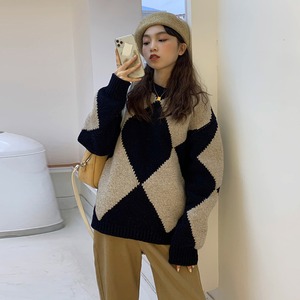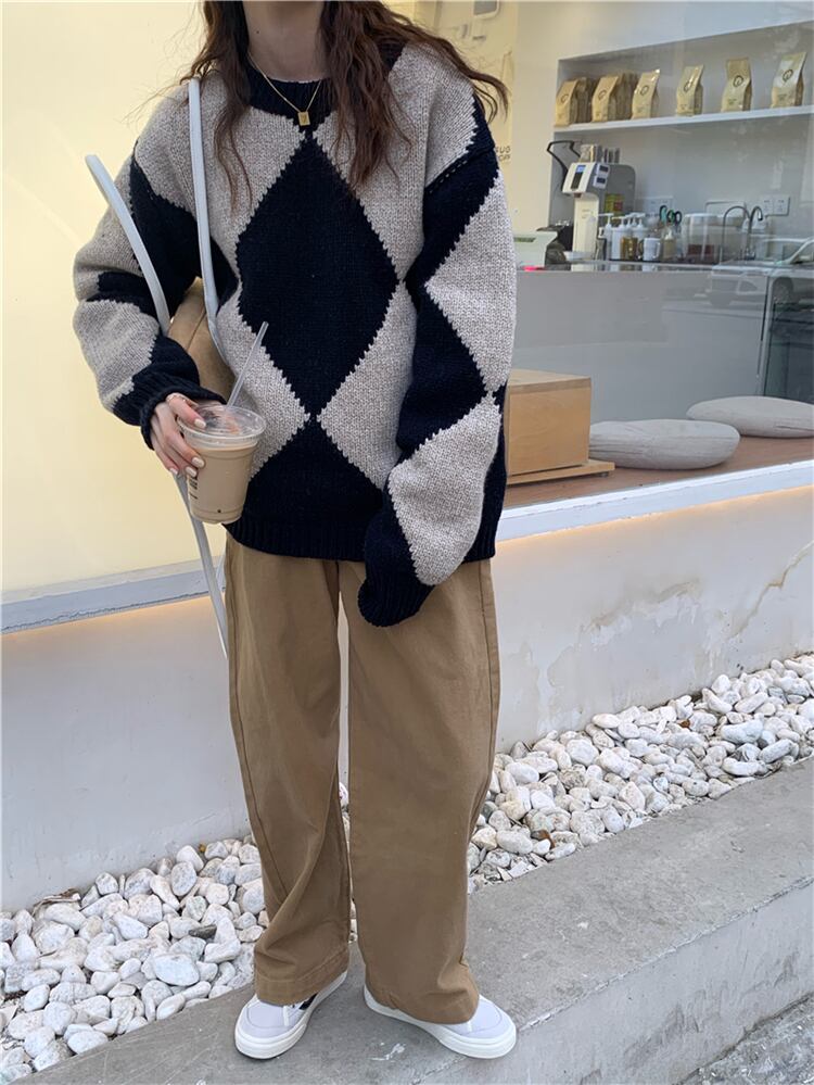 【韓国通販 dgo】Argyle sweater & wide-leg pants (B0875)