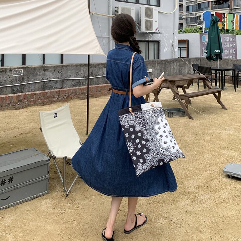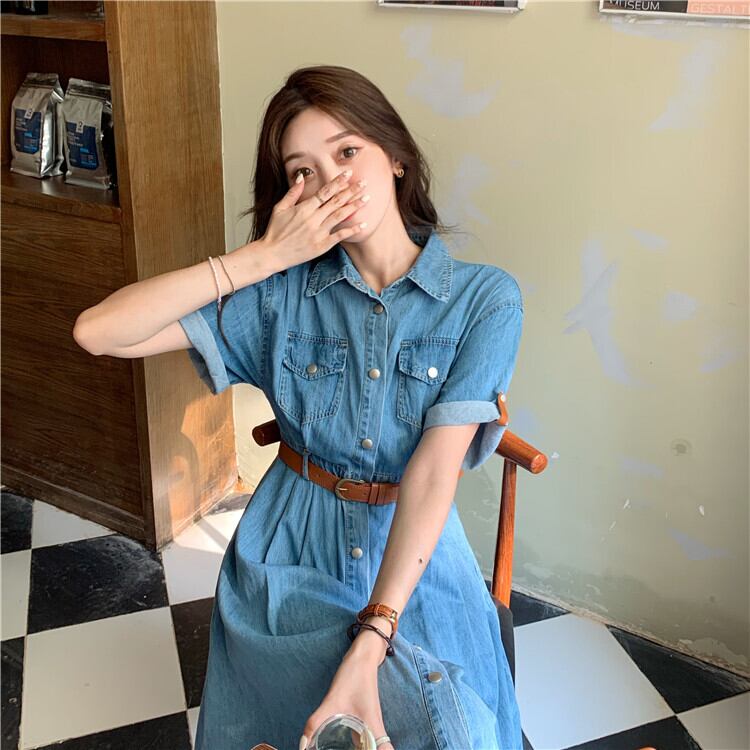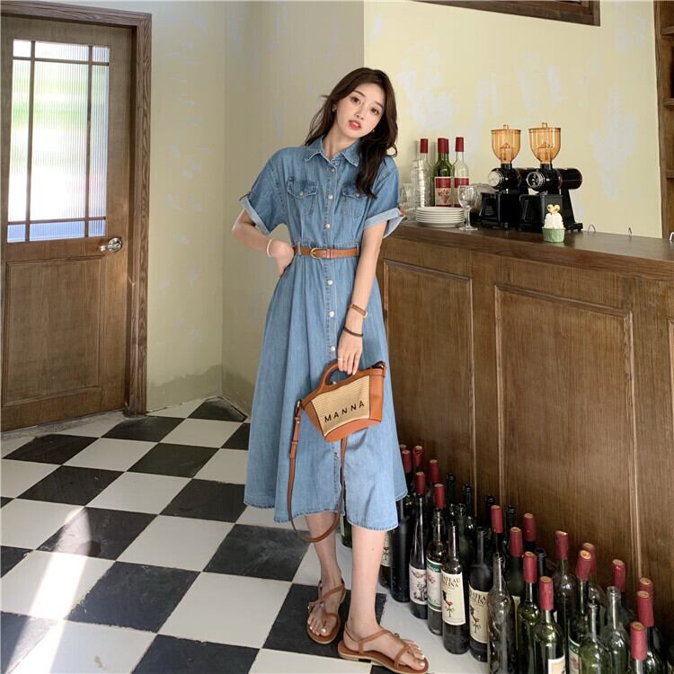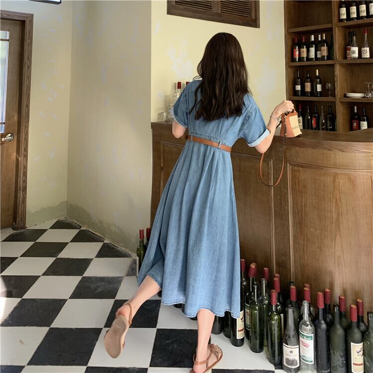 【韓国通販 dgo】Aline roll up sleeve denim dress(B0893)