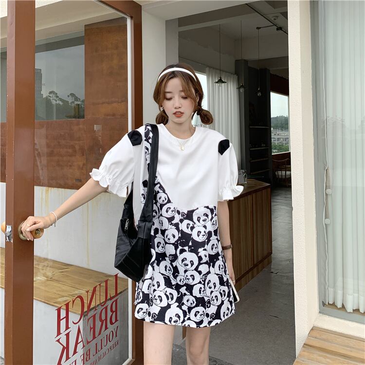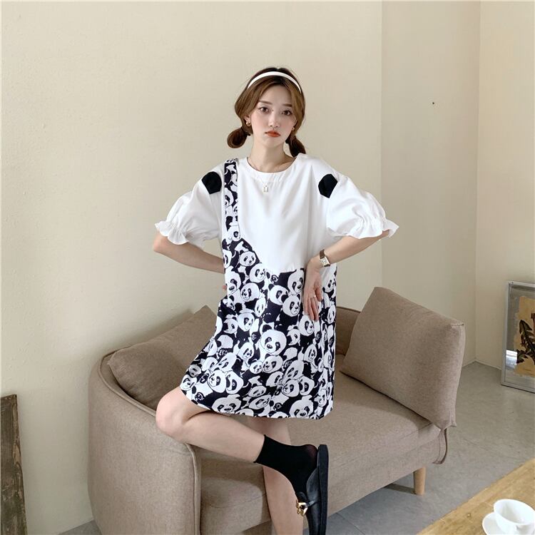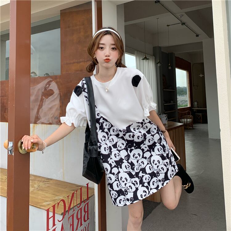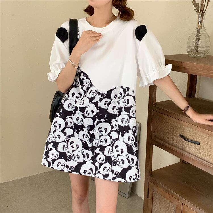 パンダのキャクタープリントとパフスリーブが可愛いアイテムです。