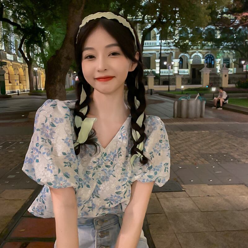 【韓国通販 dgo】floral v-neck puff sleeve blouse 2colors(B0899)