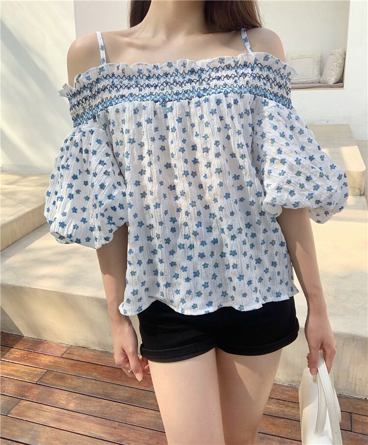 【韓国通販 dgo】off-shoulder floral puff sleeve blouse(B0901)
