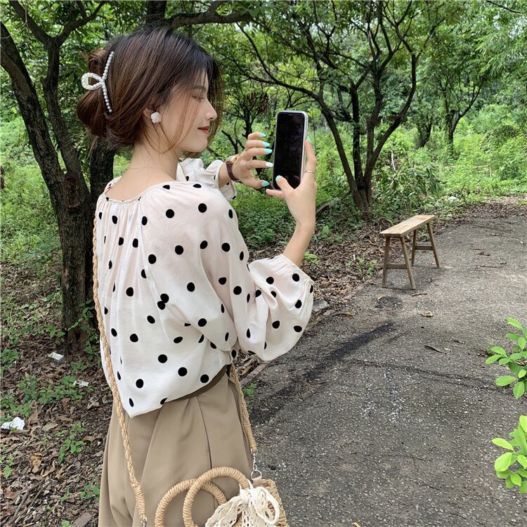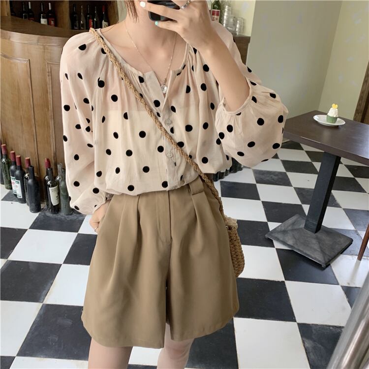 【韓国通販 dgo】dot pattern french chiffon shirt(B0914)