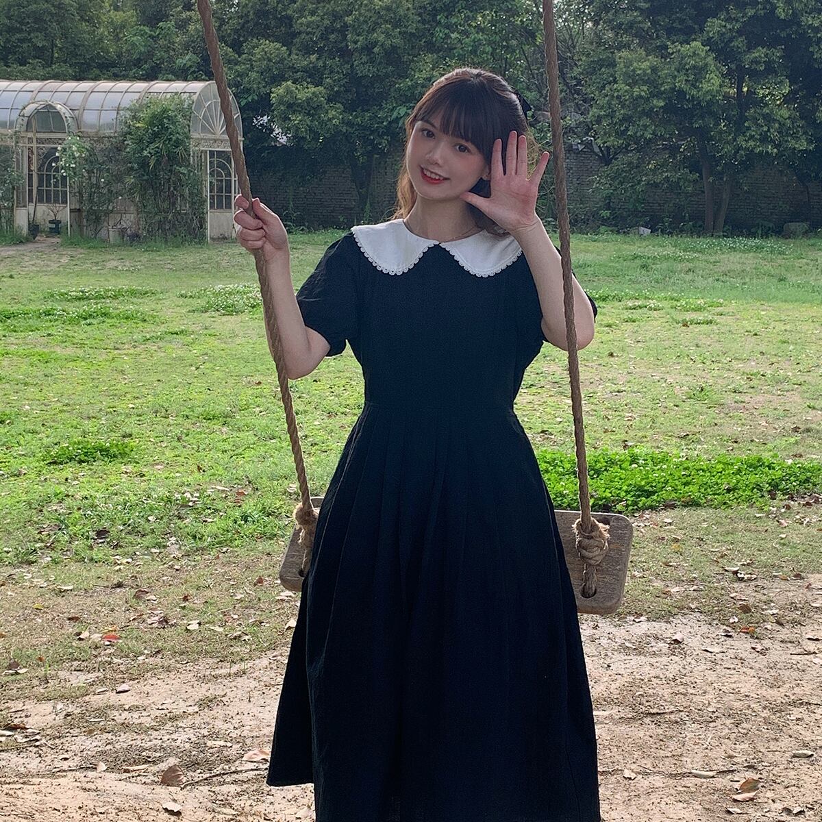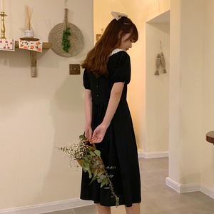【韓国通販 dgo】retro puff sleeve big collar dress(B0915)