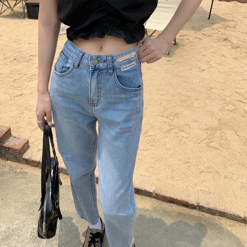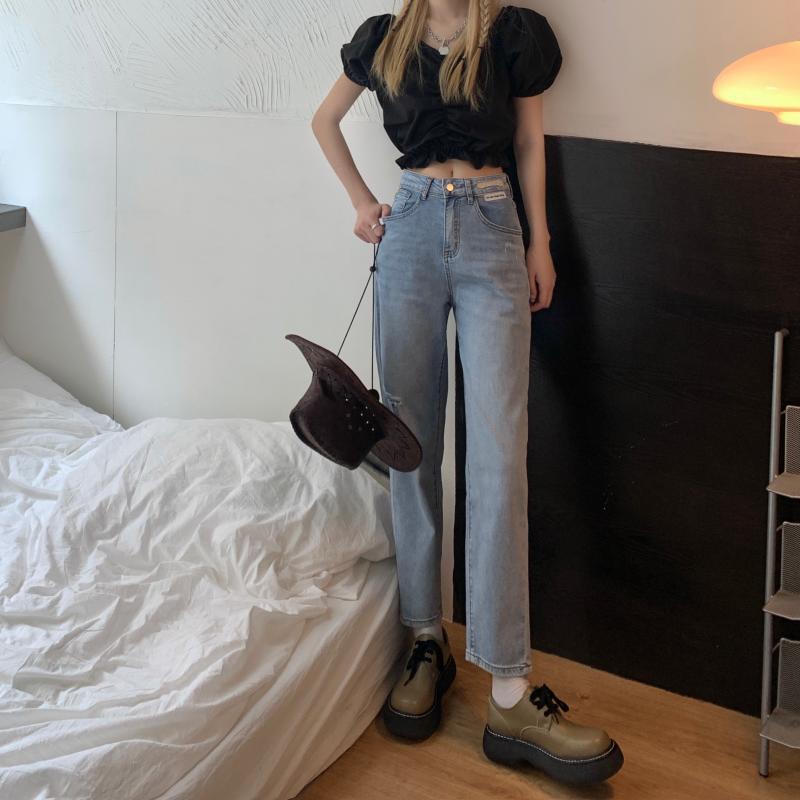 【韓国通販 dgo】high-waist straight-leg cropped jeans(B0916)