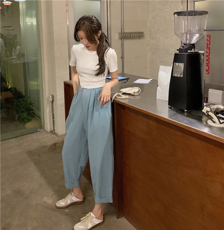 【韓国通販 dgo】high-waist straight-leg cropped pants (B0918)