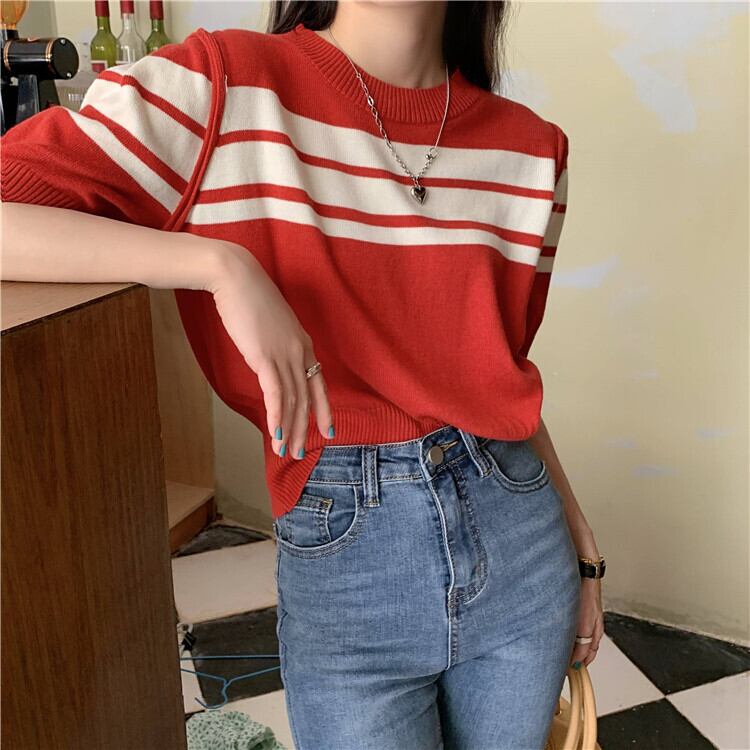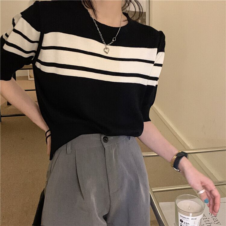 【韓国通販 dgo】french stripe knit tops 2colors(B0921)