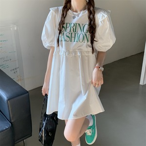 【韓国通販 dgo】round neck puff sleeve dress 2colors(B0924)