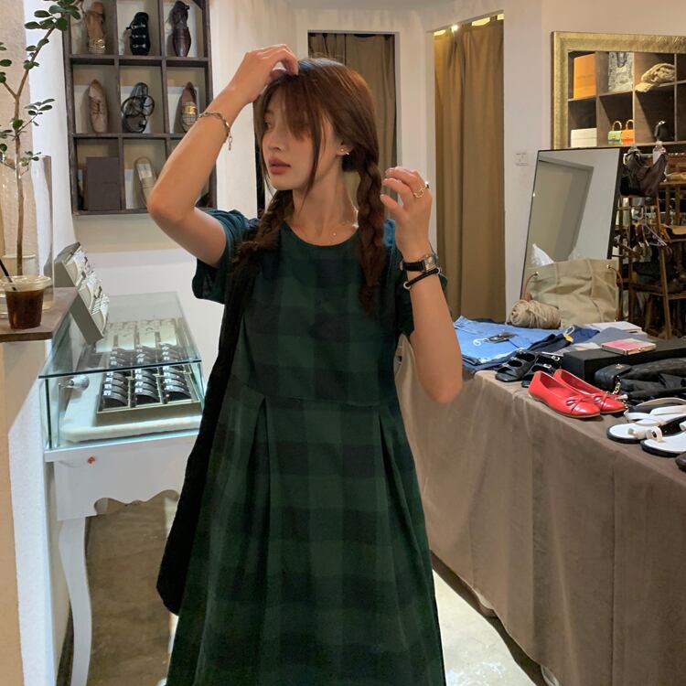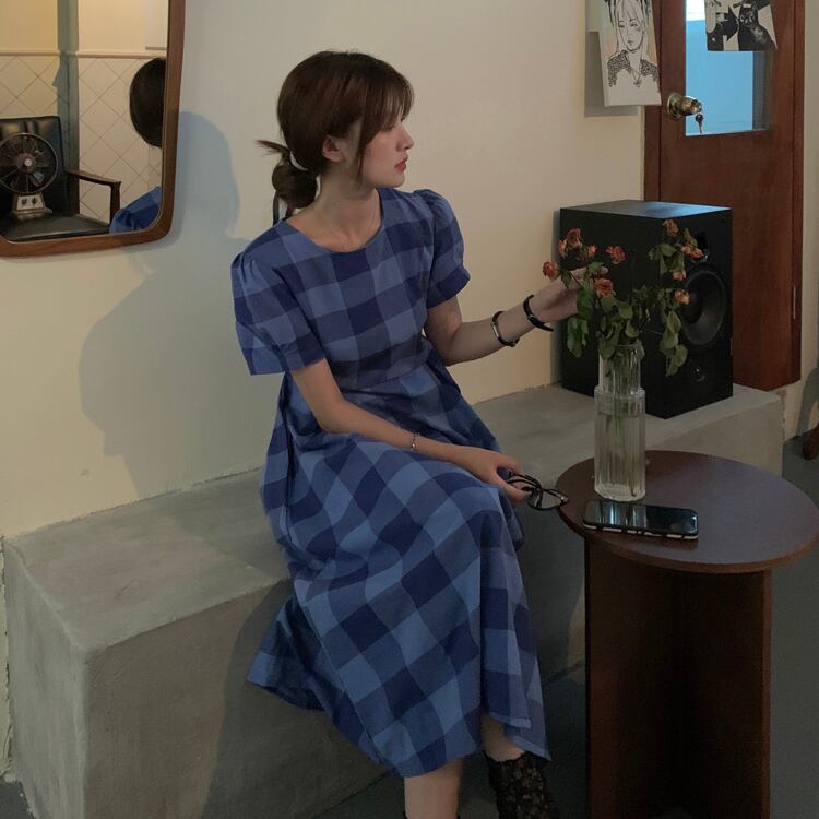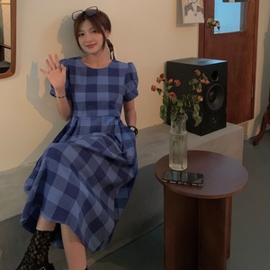 【韓国通販 dgo】retro checked round neck dress 2colors(B0927)