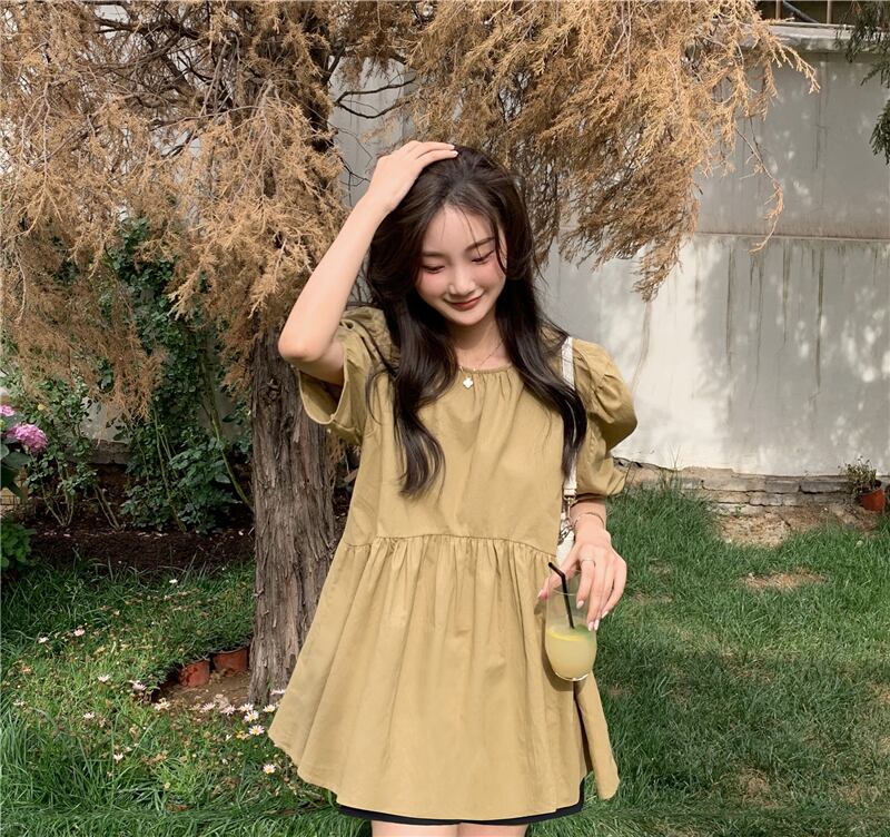 【韓国通販 dgo】round neck puff sleeve dress(B0936)