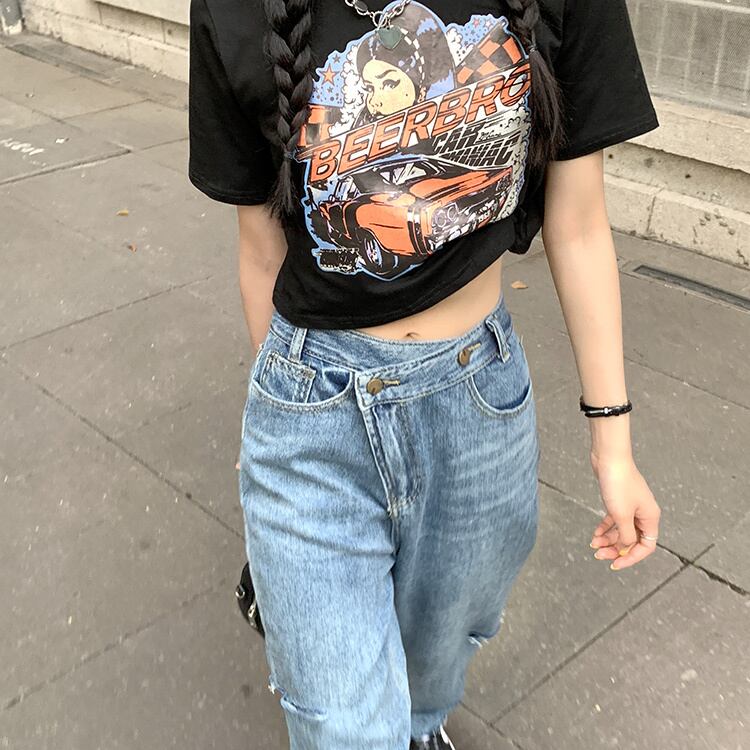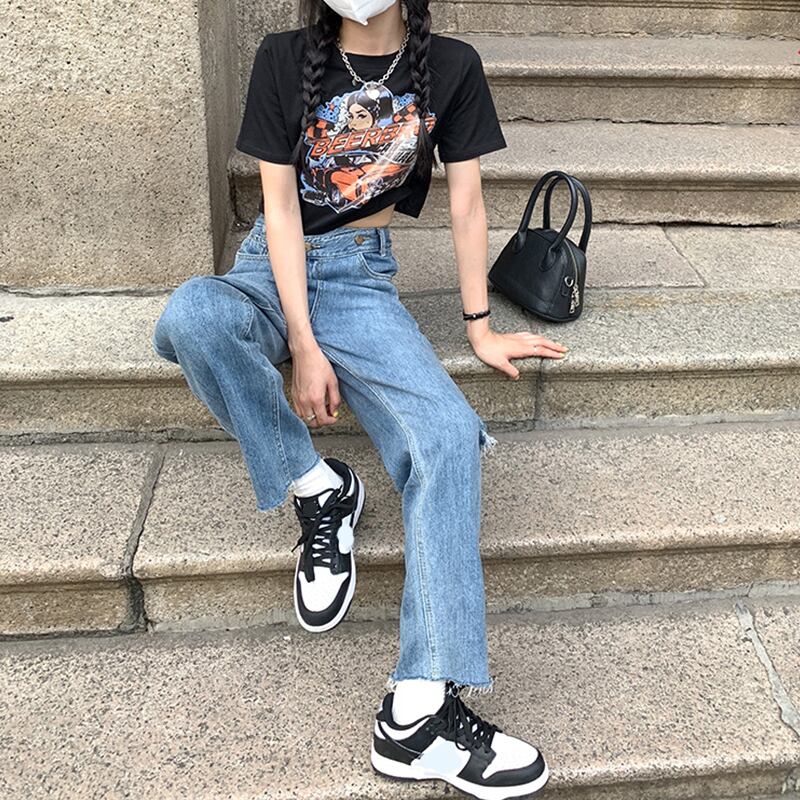 【韓国通販 dgo】high-waist retro straight-leg jeans(B0937)