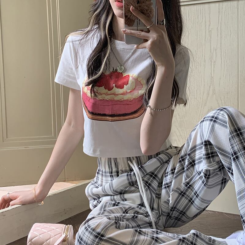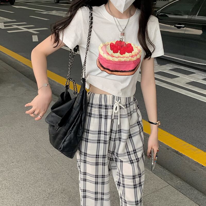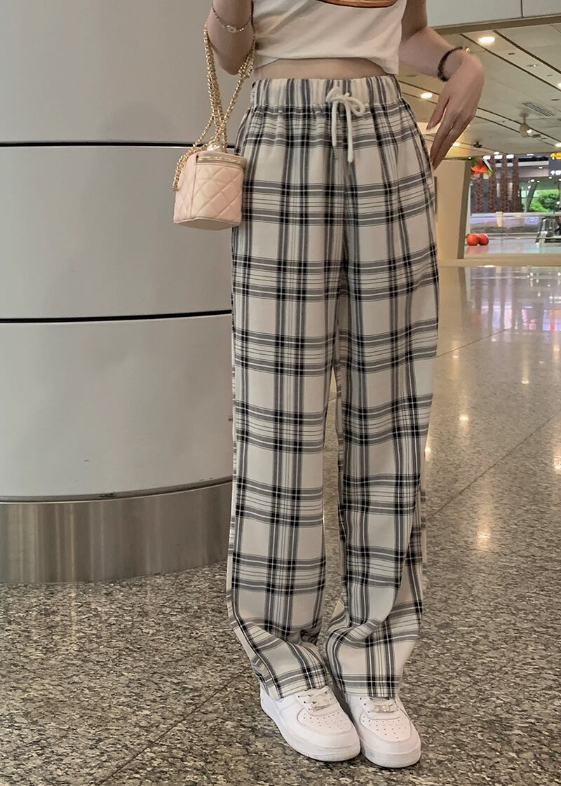【韓国通販 dgo】high-waist checked casual straight pants(B0938)