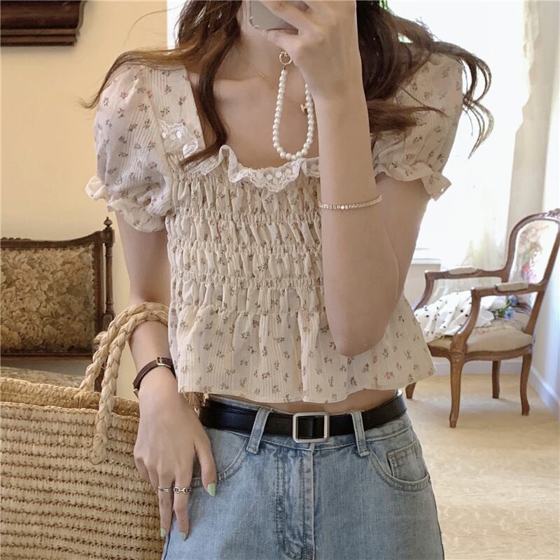 【韓国通販 dgo】square neck floral blouse 2colors(B0971)