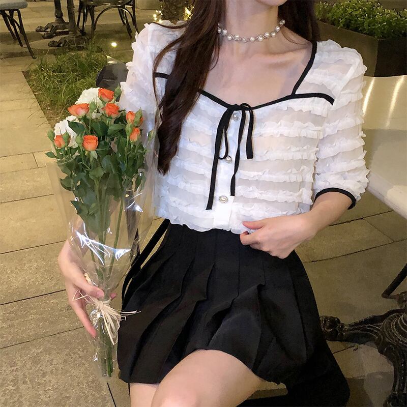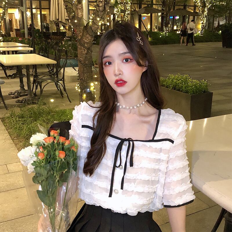 【韓国通販 dgo】french square neck chiffon white blouse (B0972)