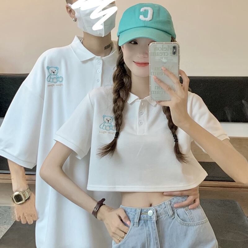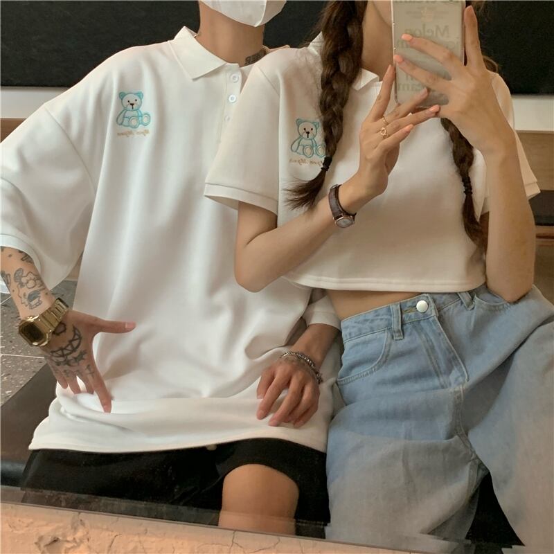【韓国通販 dgo】Polo collar white tops couple coordination(B0985)