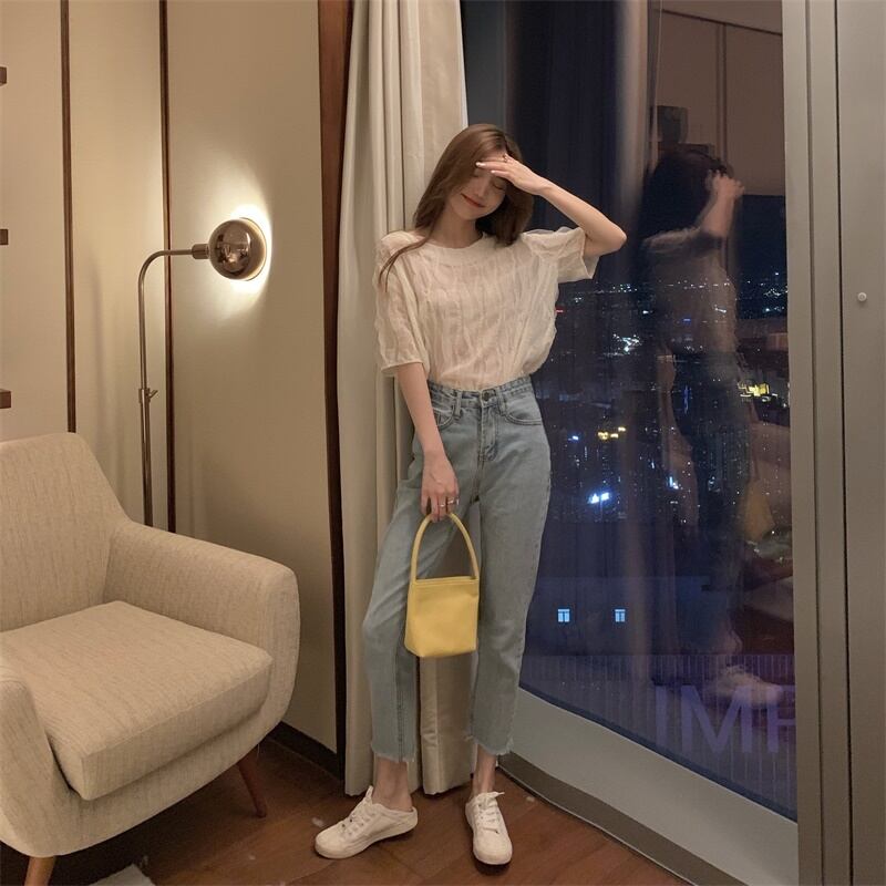 【韓国通販 dgo】french round neck chiffon tops 2colors(B0987)