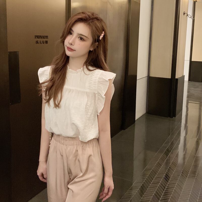 【韓国通販 dgo】french sleeve-less chiffon blouse(B1153)