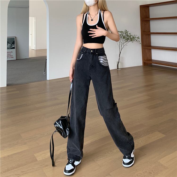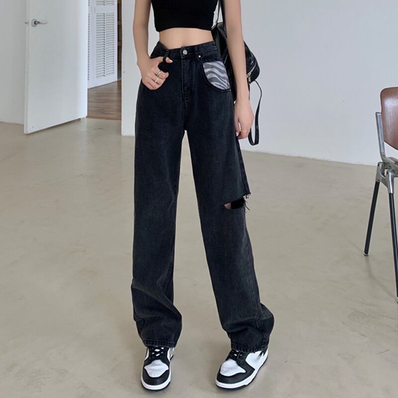 【韓国通販 dgo】high-waist wide-leg damage jeans(B0999)