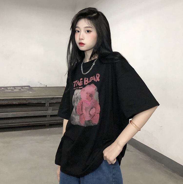【韓国通販 dgo】round neck character T-shirt 2colors(B1008)