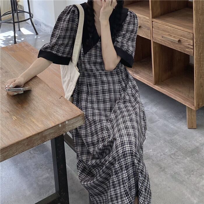 【韓国通販 dgo】big collar high-waist long skirt dress(B1017)