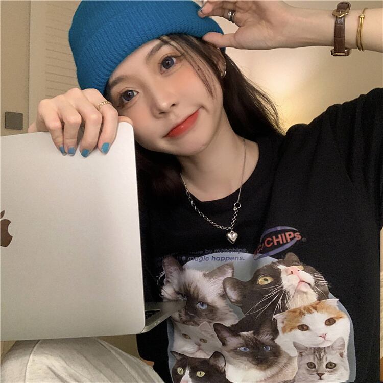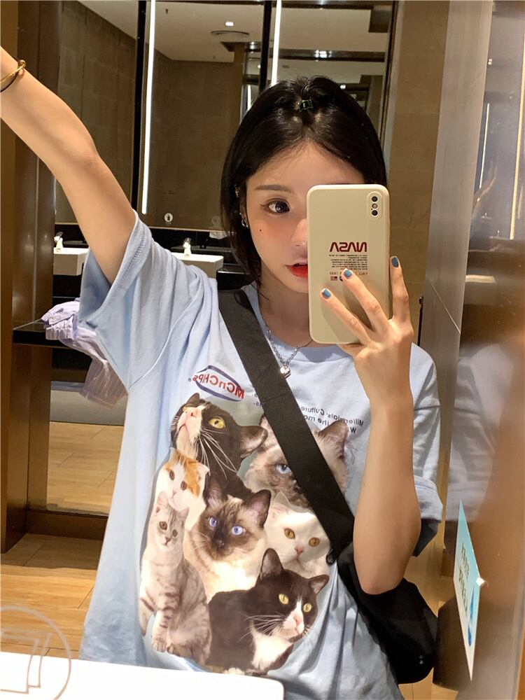 【韓国通販 dgo】cat print T-shirt 3colors(B1018)