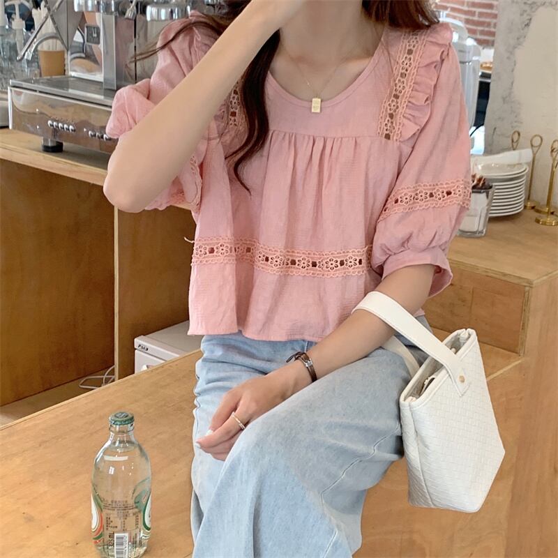【韓国通販 dgo】round neck puff sleeve blouse 3colors(B1022)